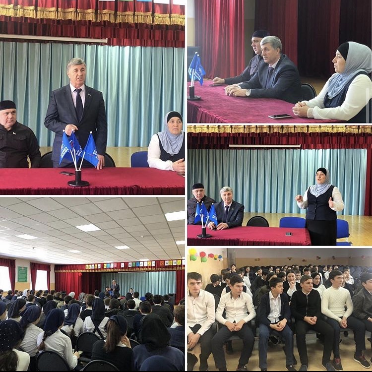 Встреча депутатов партии «Единая Россия» с учащимися старших классов МБОУ «СОШ №2 г. Шали». В ходе беседы поднимались вопросы духовно-нравственного воспитания молодежи и профилактики борьбы с наркоманией в современной среде.