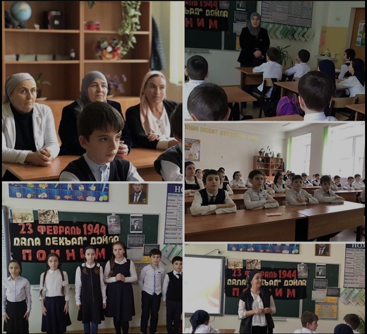 Классный час на тему: «Чечено-ингушская депортация 1944 года. Помним. Скорбим» прошёл в 4 «б» классе под руководством Джабраиловой Розы Атиевны. Все дети увлечённо слушали, а после выступили с подготовленными номерами.