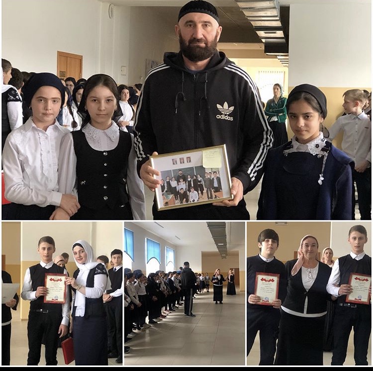 Накануне во время большой перемены учащиеся старшего и среднего звеньев собрались для проведения общешкольной линейки. На этот раз среди радостных событий стало официальное награждение победителей и призеров конкурса «А ну-ка, мальчики!», а также подготовленное выступление учениц 5 «В» класса. Девочки выразили благодарность своему классному руководителю Нинаеву Аслану Солтамиковичу, а после подарили памятное фото.