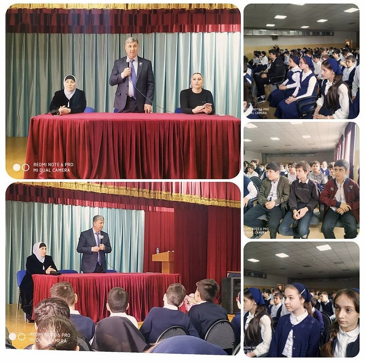 Сегодня в нашей школе прошла встреча учащихся с депутатом партии «Единая Россия» Бердукаевым Сайпи Жамалайловичем .Беседа была посвящена знаменательной дате 23 марта Дню Конституции ЧР..В своей речи депутат отметил,что в 2003 году прошёл Референдум благодаря воле и мудрости Первого Президента Чеченской Республики Героя России Ахмата -Хаджи Кадырова.Этим решением он спас чеченский народ от гибели.