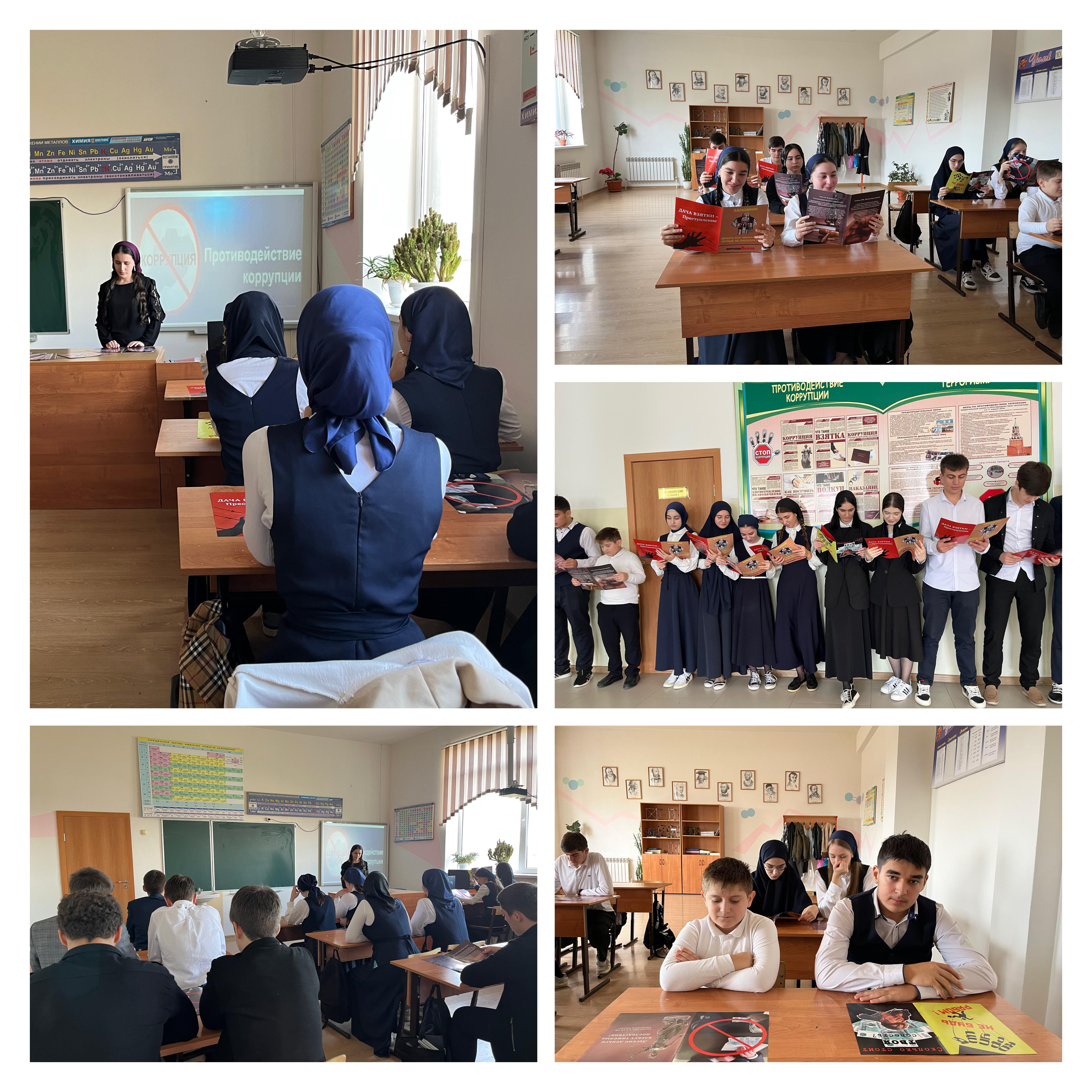 Отделом в Шалинском районе УФСБ России по Чеченской Республике совместно с МУ «Отдел образования Шалинского муниципального района Чеченской Республики» проведено профилактическое мероприятие в МБОУ «СОШ 2 г. Шали» на тему: «Коррупция и способы противодействия ей»